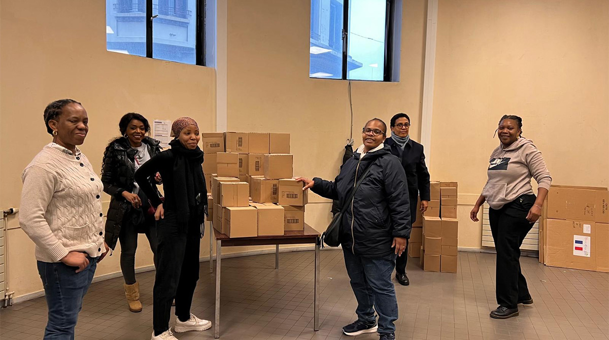 Représentante de l’État, la sous-préfète de l’arrondissement de Saint-Denis, Madame Animya N’TCHANDY, ancienne collaboratrice de l’ancien Premier Ministre Gabriel ATTAL, a visité notre Collecte Nationale à la Bourse du Travail de Saint-Denis, en plein chargement du premier container pour Mayotte, samedi 11 janvier 2025.